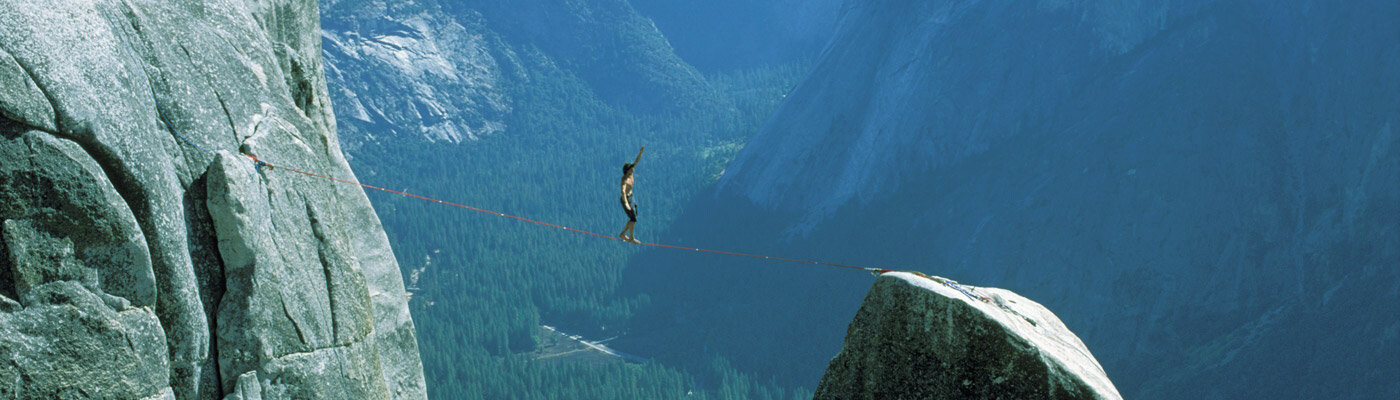 Dean Potter is one the most progressive American climbers. Until now he is the only one to climb El Capitan and Half Dome in less than 24 hours. On the Lost Arrow Spire in Yosemite Valley Dean shows us the new trend in climbing: highlining. It's like slacklining - but way higher! A new extreme sport is born. And Dean is on the forefront of this movement. He feels totally safe up there - even without a safety rope!