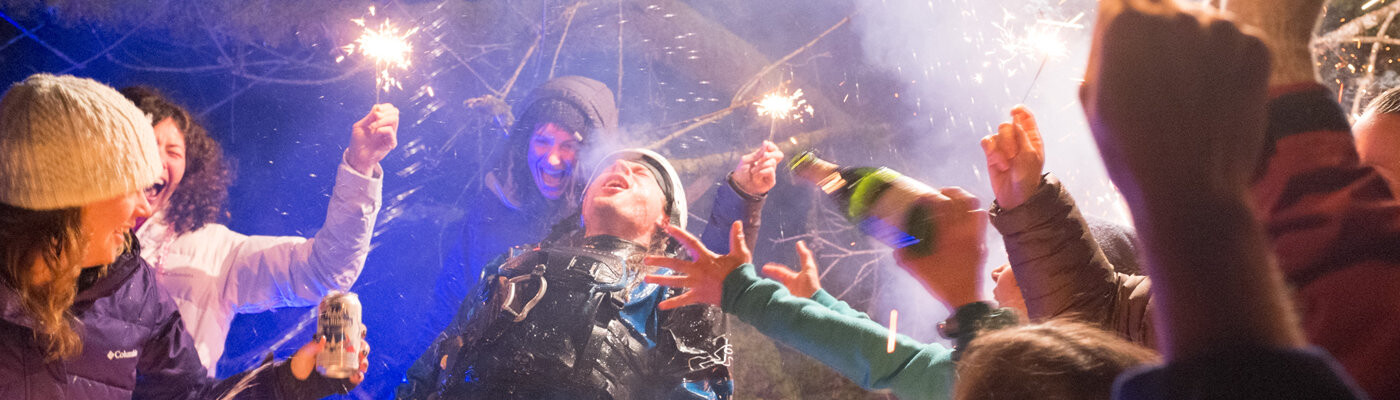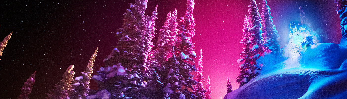 But Afterglow lets this twilight zone shine. With spotlights, coloured foil and four freeskiers in LED suits, director Nick Waggoner turns black night into a bright and colourful fireworks display and shows freeskiing in a whole new light. A party on the retina.