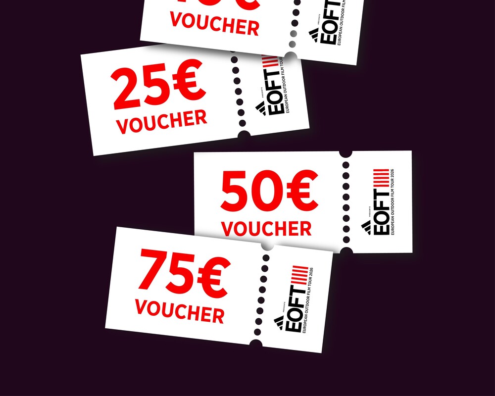 EOFT vouchers can be redeemed in the online shop on eoft.eu and are valid for tickets, streamings and merch products of the European Outdoor Film Tour. They cannot be combined with other discounts or promotions.